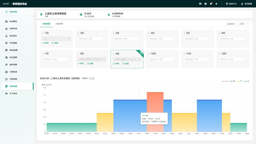 支持分别按单一制、两部制和大工业、工商业等不同用电类型进行自定义电价的设置,同时支持容量或需量申报模式的基本电费计算方式。电度电费支持尖、峰、平、谷、深等不同分时段的自定义设置。