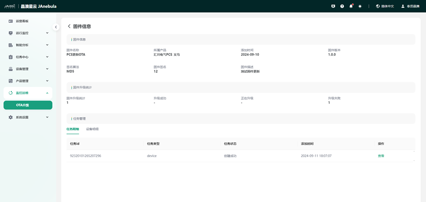 OTA(Over-the-Air Technology)即空中下载升级技术。云平台支持通过OTA方式进行设备升级。