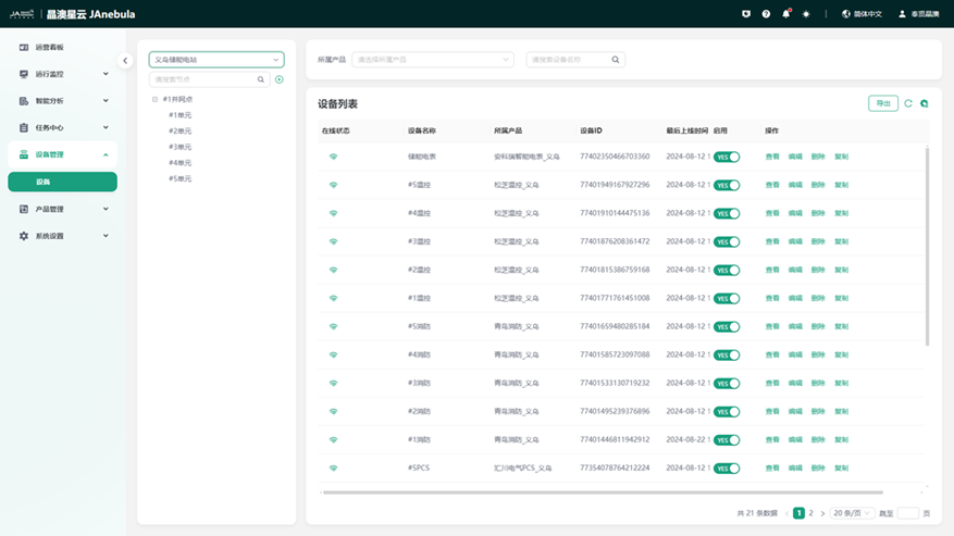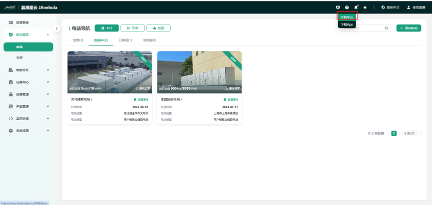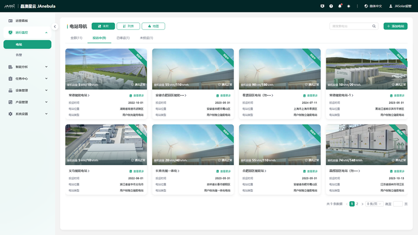 多导航方式管理集群电站,多视角呈现电站的分布,简洁高效。支持卡片、列表、地图多导航方式管理集群电站。快速、便捷触达目标电站,便捷创建新电站。