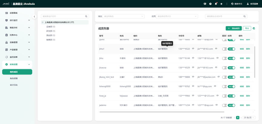 多租户SaaS模式,基于RBAC权限管理体系,保障数据安全共享,满足运营、资产、组织、运维等不同角色的数据访问需求。